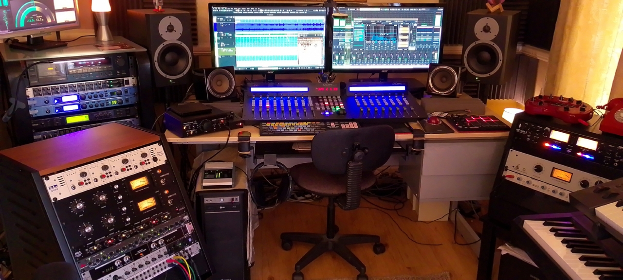 The studio employs a “hybrid” approach to recording and mixing using the latest in digital music production software, plugins and virtual instrument libraries combined with classic analogue outboard effects and processors.